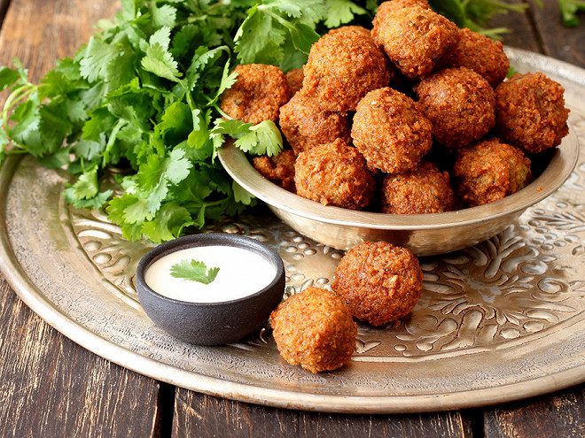 Originaires du Moyen Orient, les falafels sont de délicieuses boulettes de pois chiches épicées et frites. Dans la recette traditionnelle, on utilise des pois chiches secs trempés une douzaine d’heures. Pour gagner du temps, nous vous proposons ici de les remplacer par des pois chiches en conserve. Pratique pour assouvir une envie urgente de falafels !