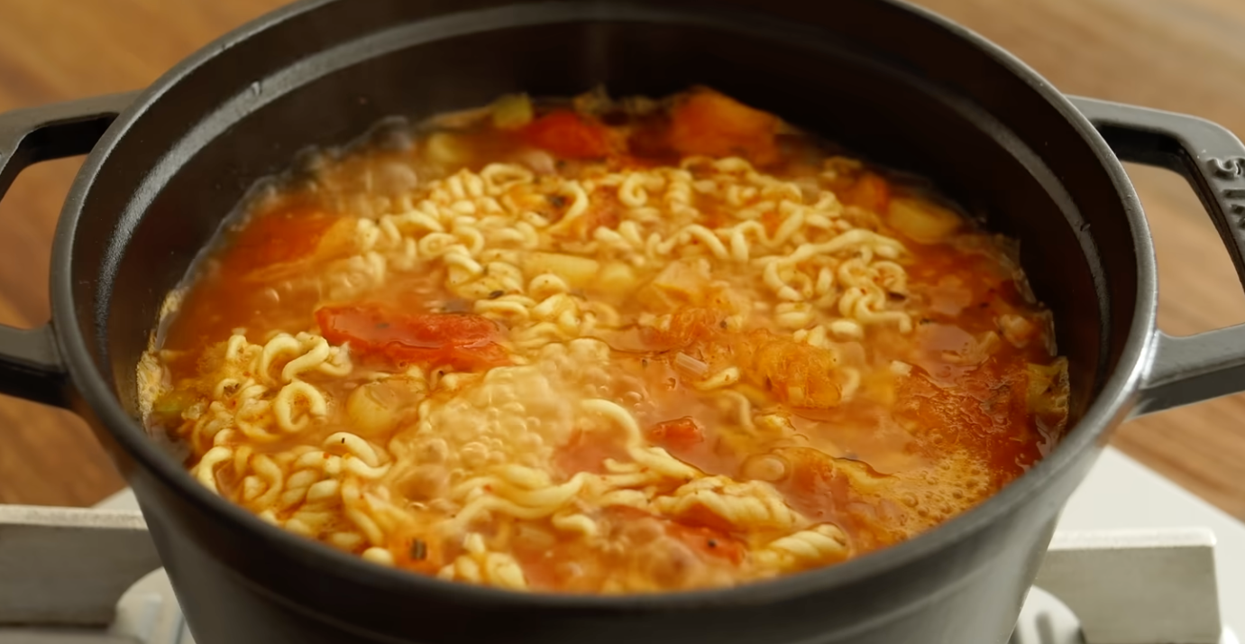 - Ajouter les nouilles ramen et poursuivre la cuisson.