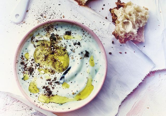 - Dans un bol, mélangez délicatement le yaourt grec avec le tahini.